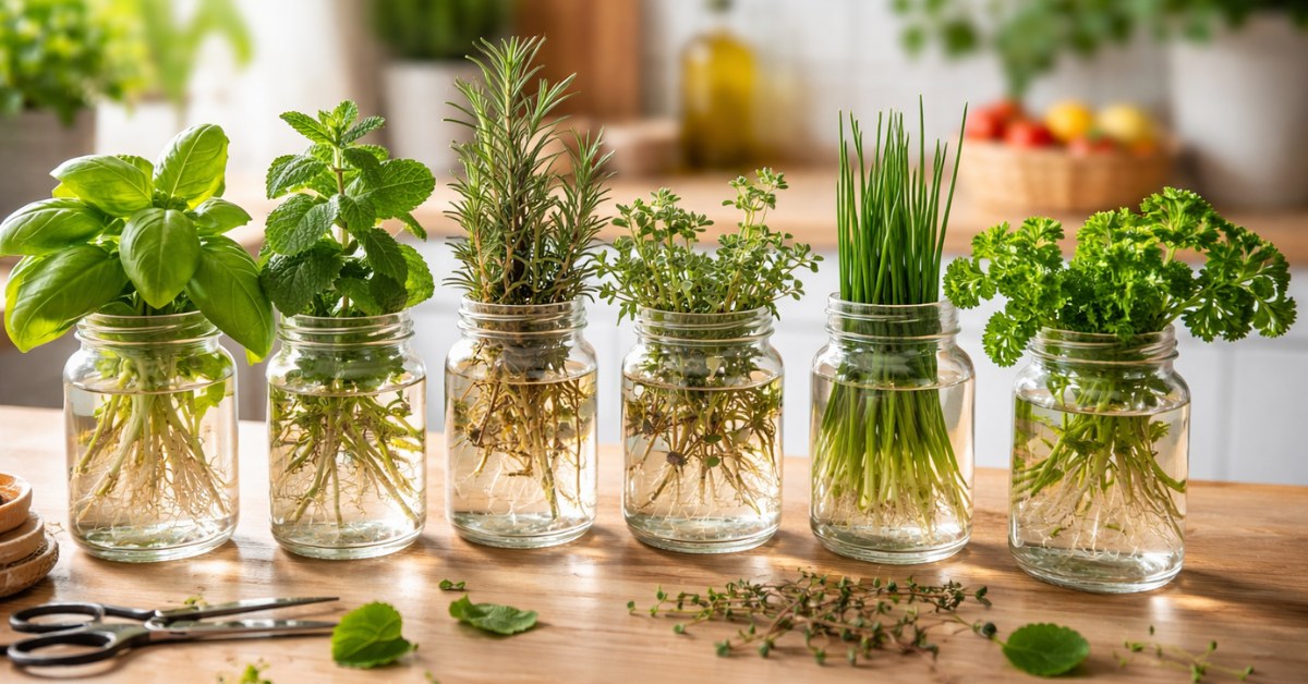 Herbes aromatiques dans l’eau : 7 plantes faciles pour un potager d’intérieur